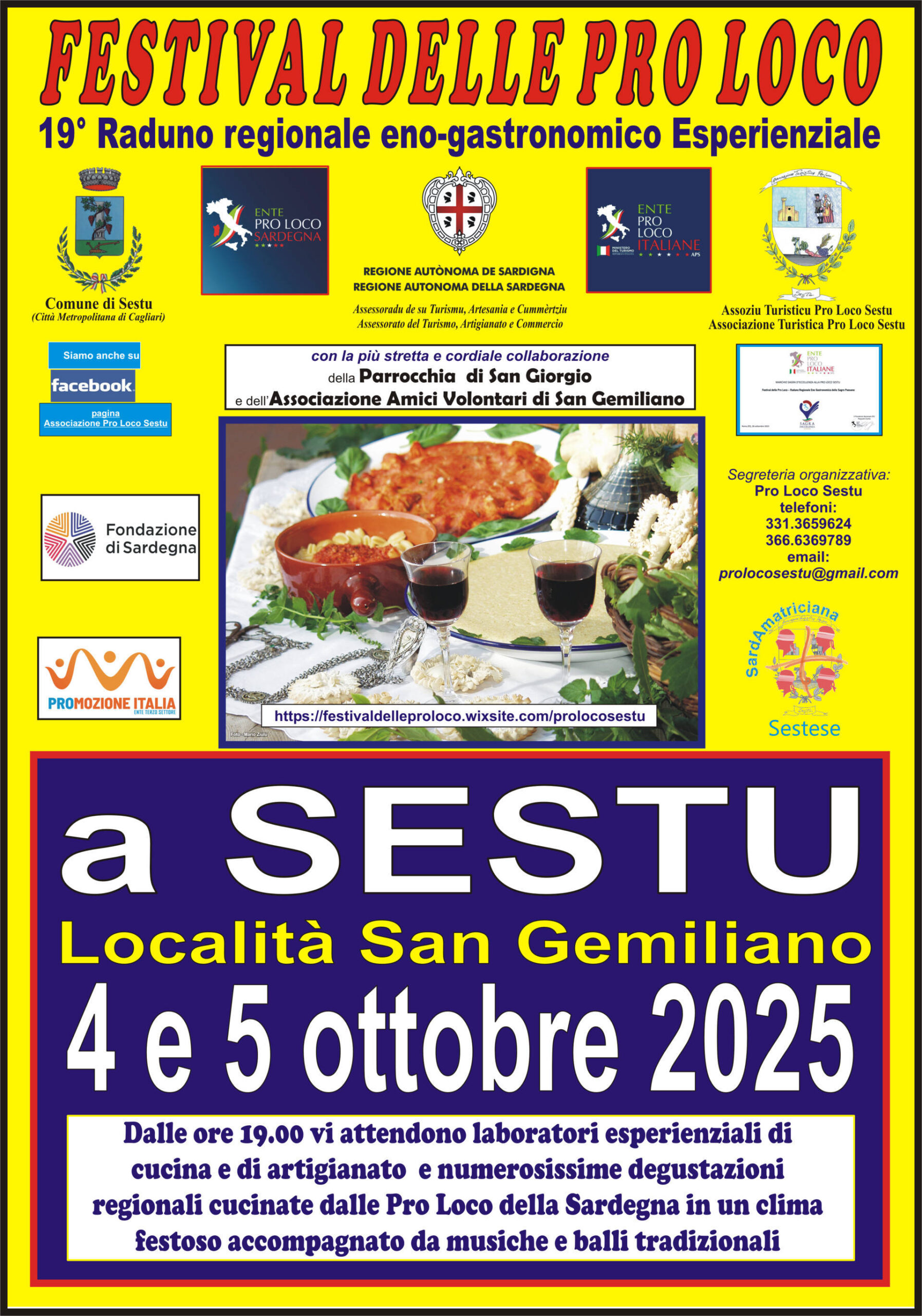 Si avvisano tutti gli interessati che dal 04 al 05 ottobre 2025, in località San Gemiliano, si terrà la 19ª Edizione del “Festival delle Pro Loco”.