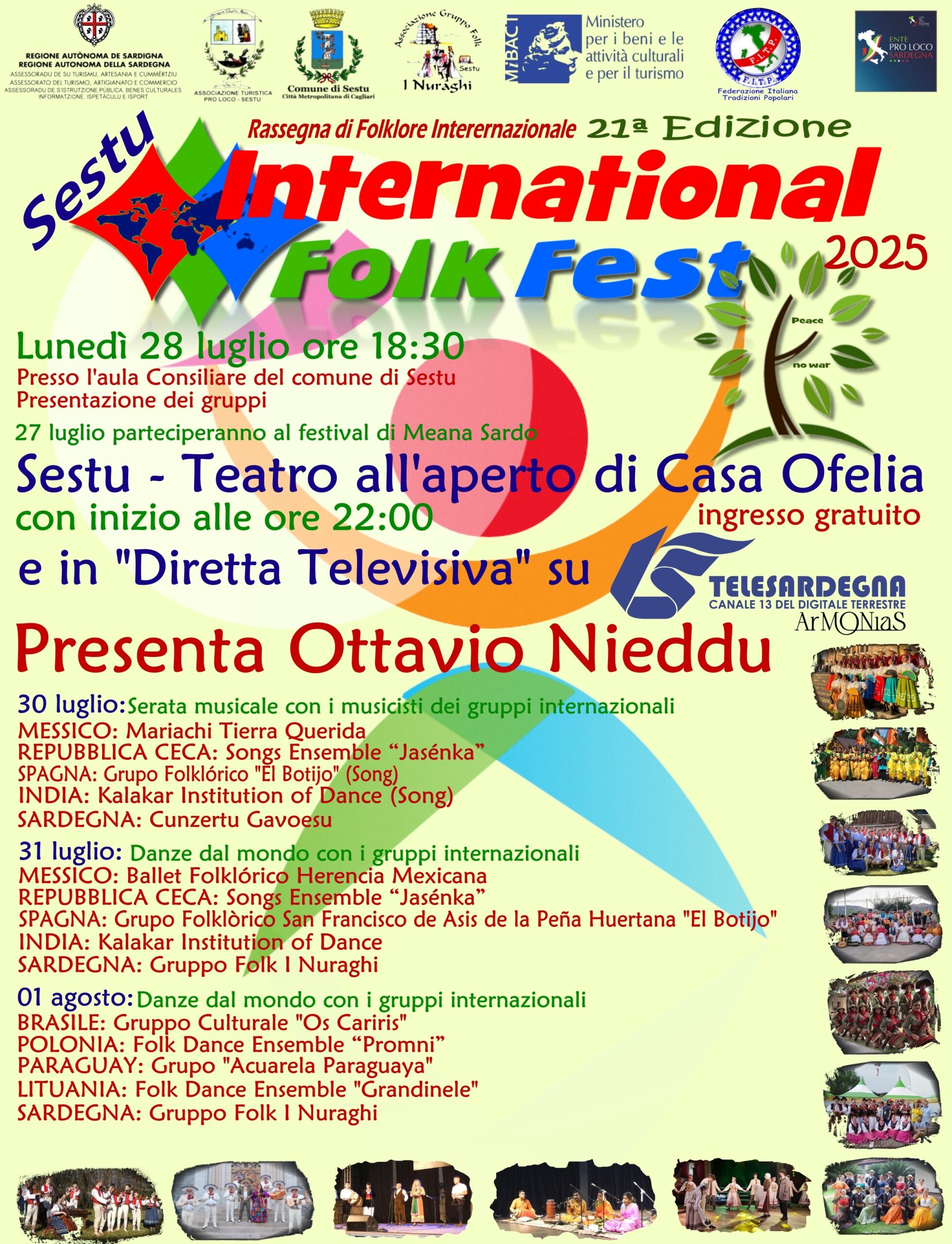 Si avvisano tutti gli interessati che dal 30 luglio al 01 agosto 2025 presso Casa Ofelia, sita in via Parrocchia n. 88, si terrà la 21° Edizione dell’International Folk Fest.