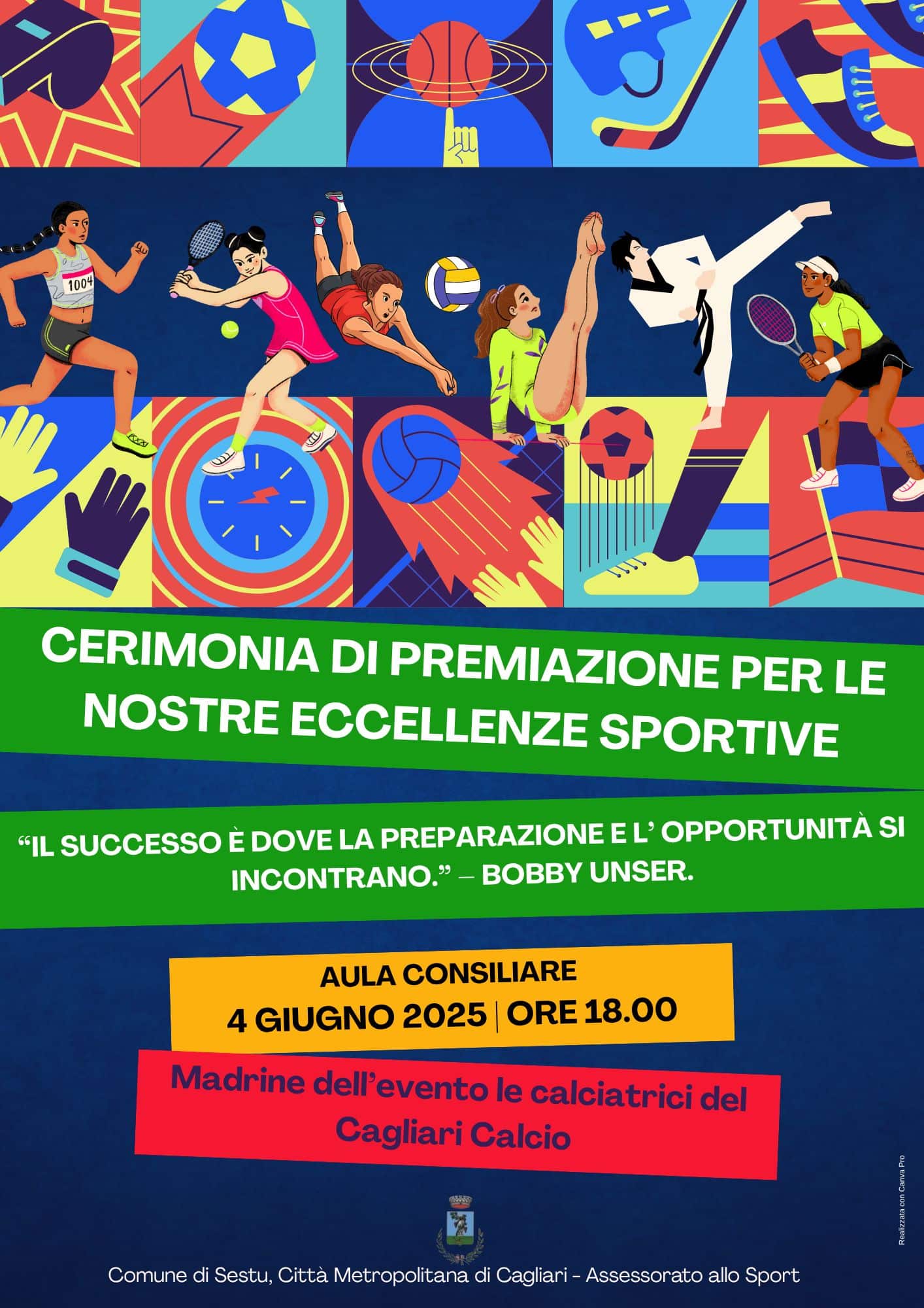 L’Assessore allo Sport e l’Amministrazione Comunale organizzano una cerimonia di riconoscimento delle eccellenze sportive che si sono particolarmente distinte nell’ambito delle proprie discipline nella stagione sportiva 2023-2024.