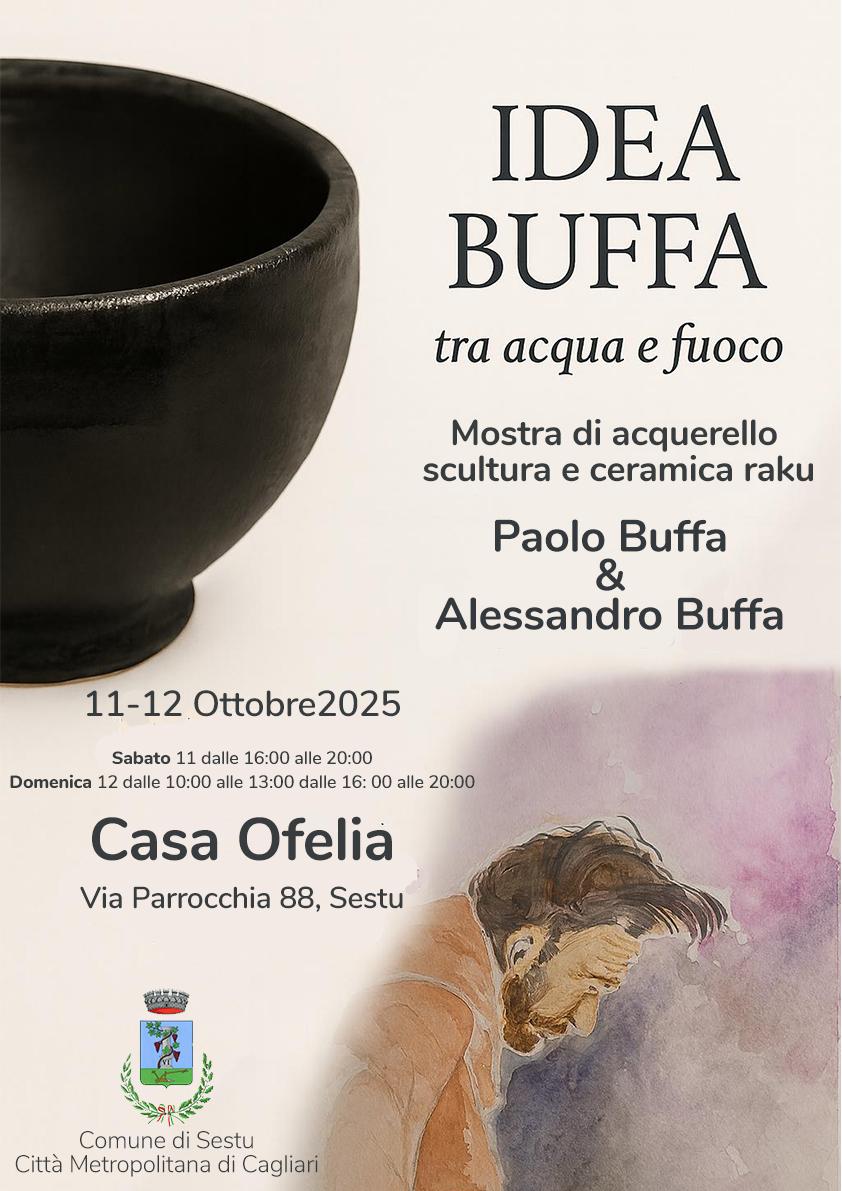 Si avvisano tutti gli interessati che dall’11 al 12 ottobre 2025, presso la struttura comunale “Casa Ofelia” sita in via parrocchia n. 88, si terrà la mostra di acquerello, scultura e ceramica raku “Idea Buffa”.