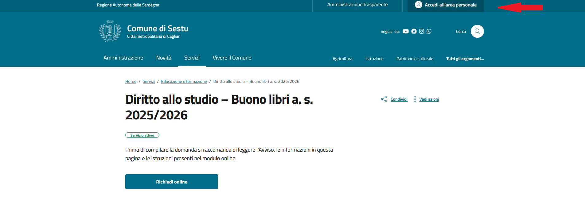 Si informano i richiedenti del buono libri 25/26 che è possibile presentare spontaneamente la documentazione giustificativa della spesa entrando con accesso autenticato all’area personale presente in alto a destra della home page del sito istituzionale nella sezione “le mie pratiche” / “Diritto allo studio – Buono libri a. s. 2025/2026″/dettaglio/messaggi .
