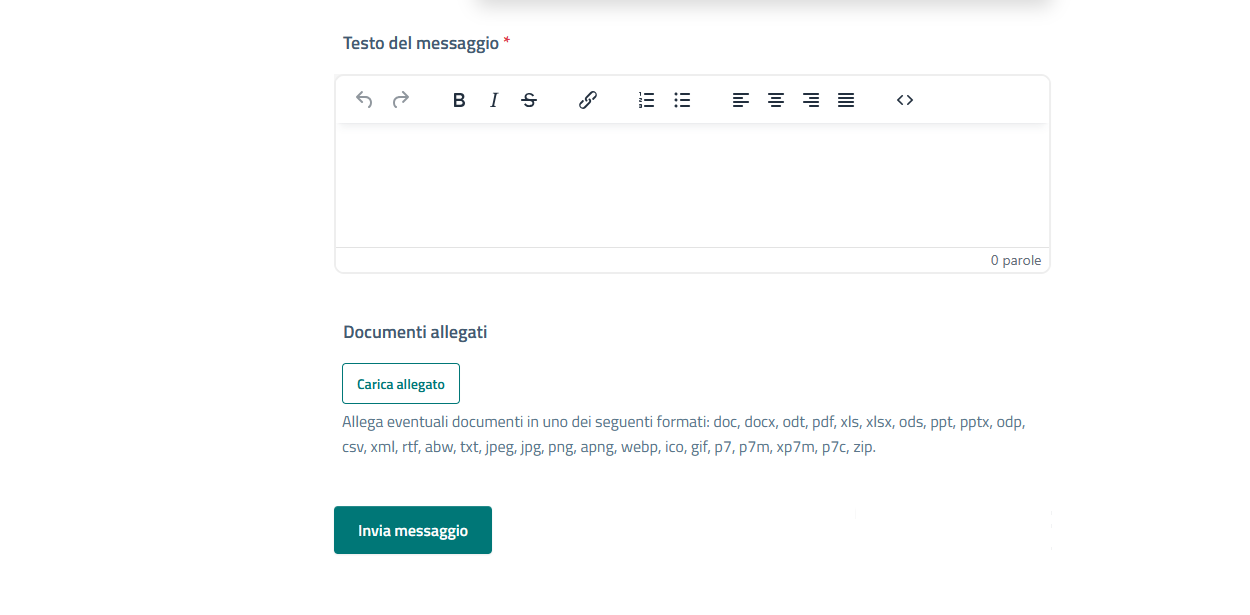 - il testo di accompagnamento (come ad esempio “si trasmette la documentazione di spesa”) e il file o i files delle spese devono essere inseriti alla sezione messaggi ; (vedasi immagine a fondo pagina)