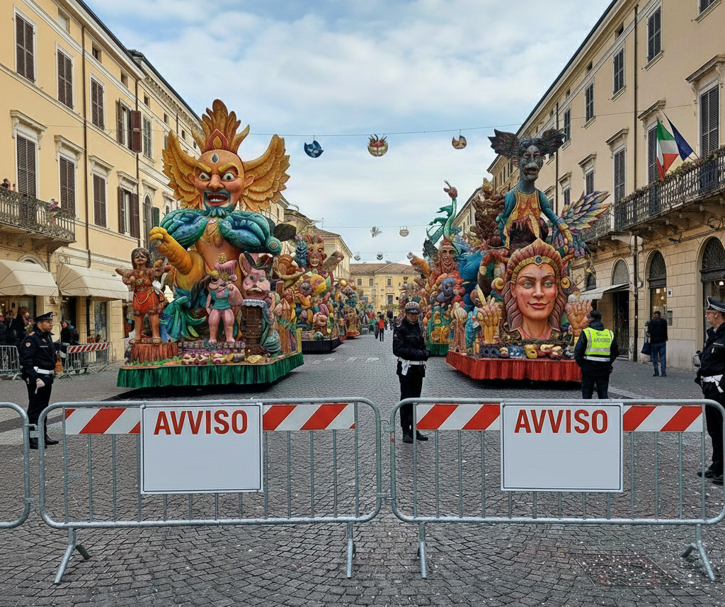 È stabilito, inoltre, dalle ore 13,30 e fino alle ore 21,00 del giorno domenica 1° marzo 2026, e comunque sino al termine della sfilata: