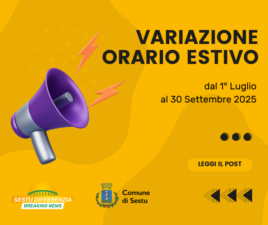 Si avvisano i cittadini che a partire dal 1° Luglio, sino al 30 Settembre 2025, entrerà in vigore l’orario estivo di raccolta dei rifiuti.